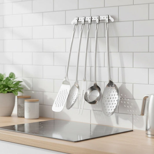 Sublimez votre cuisine avec ce set de 5 ustensiles en acier inoxydable de haute qualité, alliant élégance moderne et durabilité exceptionnelle. Chaque pièce est forgée pour résister à la corrosion...