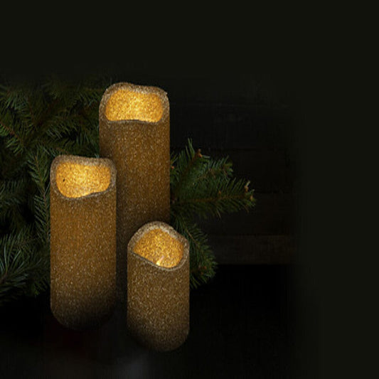 Illuminez vos soirées avec élégance grâce à ce lot de 3 bougies LED pailletées dorées, parfait pour créer une ambiance chaleureuse et scintillante sans flamme ni fumée. Leur fini doré...