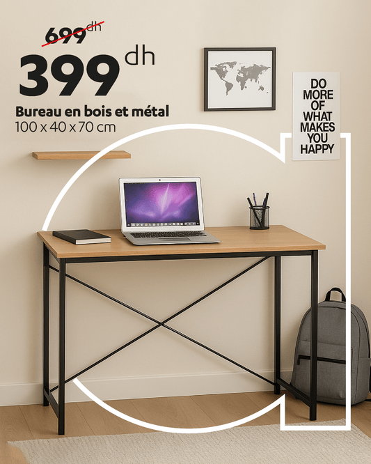🪑 Bureau Bois & Métal – Alliez Style, Solidité et Fonctionnalité Créez un véritable espace de travail moderne et inspirant avec ce magnifique bureau en bois et métal, signé Alpha55....