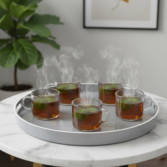 Illuminez votre intérieur avec ce plateau rond au coloris champagne, une teinte raffinée qui apporte instantanément une touche de luxe et de chaleur à votre table. Fabriqué avec des matériaux...