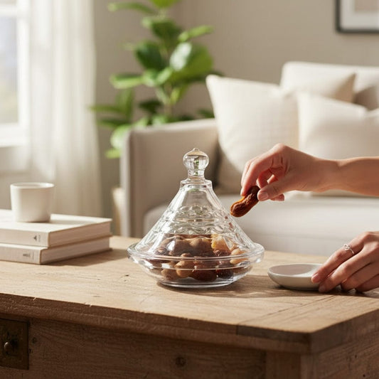 Apportez une touche marocaine chic à votre table ou à votre décoration avec ce mini tajine en verre lisse , à la fois élégant et polyvalent. Conçu en verre transparent...